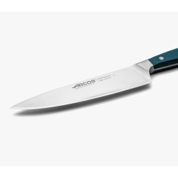 The Brooklyn series from Arcos has two features that make it particularly effective and appealing to the eye. The forged blade is made of Nitrium® stainless steel. This nitrogen-enriched steel guarantees better performance and longer edge retention. The intriguing handle is made of blue micarta, making it a unique model among kitchen knives.